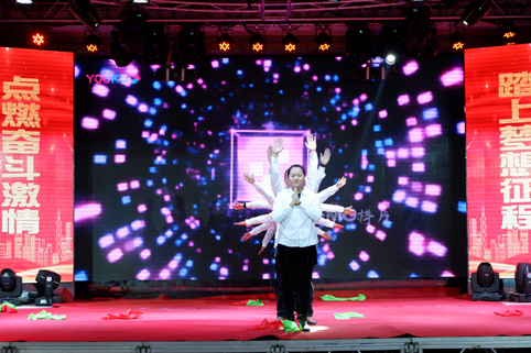 在聯(lián)歡會的現(xiàn)場,華麗舞臺燈光璀璨,背景制作喜氣祥和,一派喜迎新春的美好盛況,那一首首悅耳動聽的歌曲,那一段段優(yōu)美豪放的舞蹈,那一個個風趣搞笑的互動小品.......在舞臺上傾情巨獻,精彩紛呈,掌聲與喝彩此起彼伏,現(xiàn)場氣氛熱烈、喜氣、祥和,凱為人的魅力與風采在這一刻光芒四射,凱為人的才藝在這一刻八仙過海!!